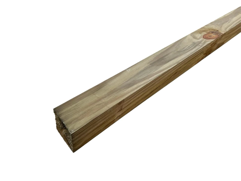 Madeira de pinus tratada em autoclave, com coloração esverdeada. Acabamento aplainado.