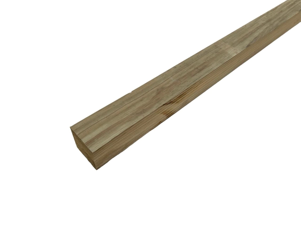 Madeira de pinus tratada em autoclave, com coloração esverdeada. Acabamento aplainado.